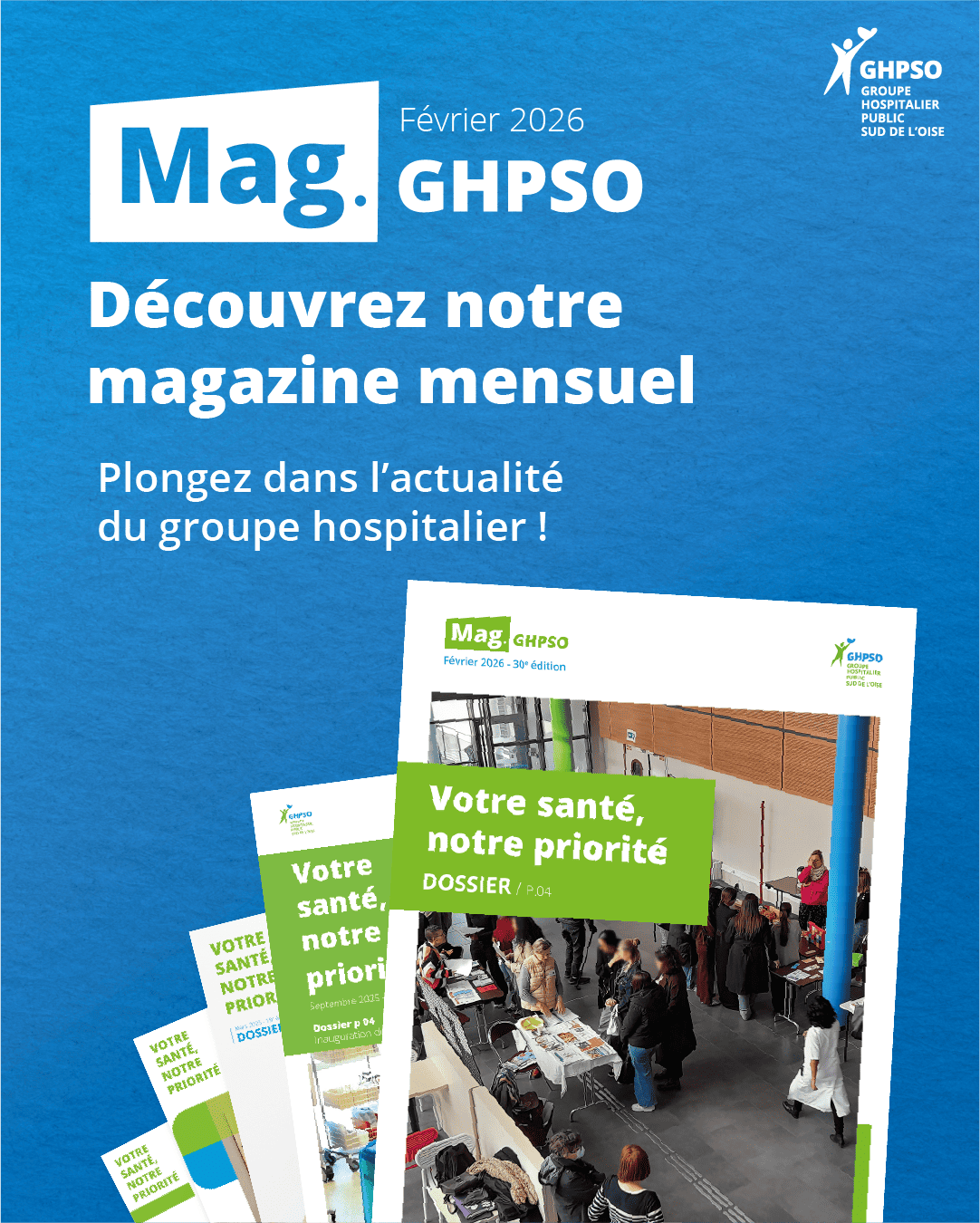 25 février 2026Magazine GHPSO - Février 2026Ce nouveau numéro propose un dossier consacré à l’éducation thérapeutique du patient (ETP). À travers ce focus, nous revenons sur les enjeux de cette démarche qui permet aux patients de devenir pleinement acteurs de leur santé, ainsi que sur les programmes développés au sein de notre établissement.