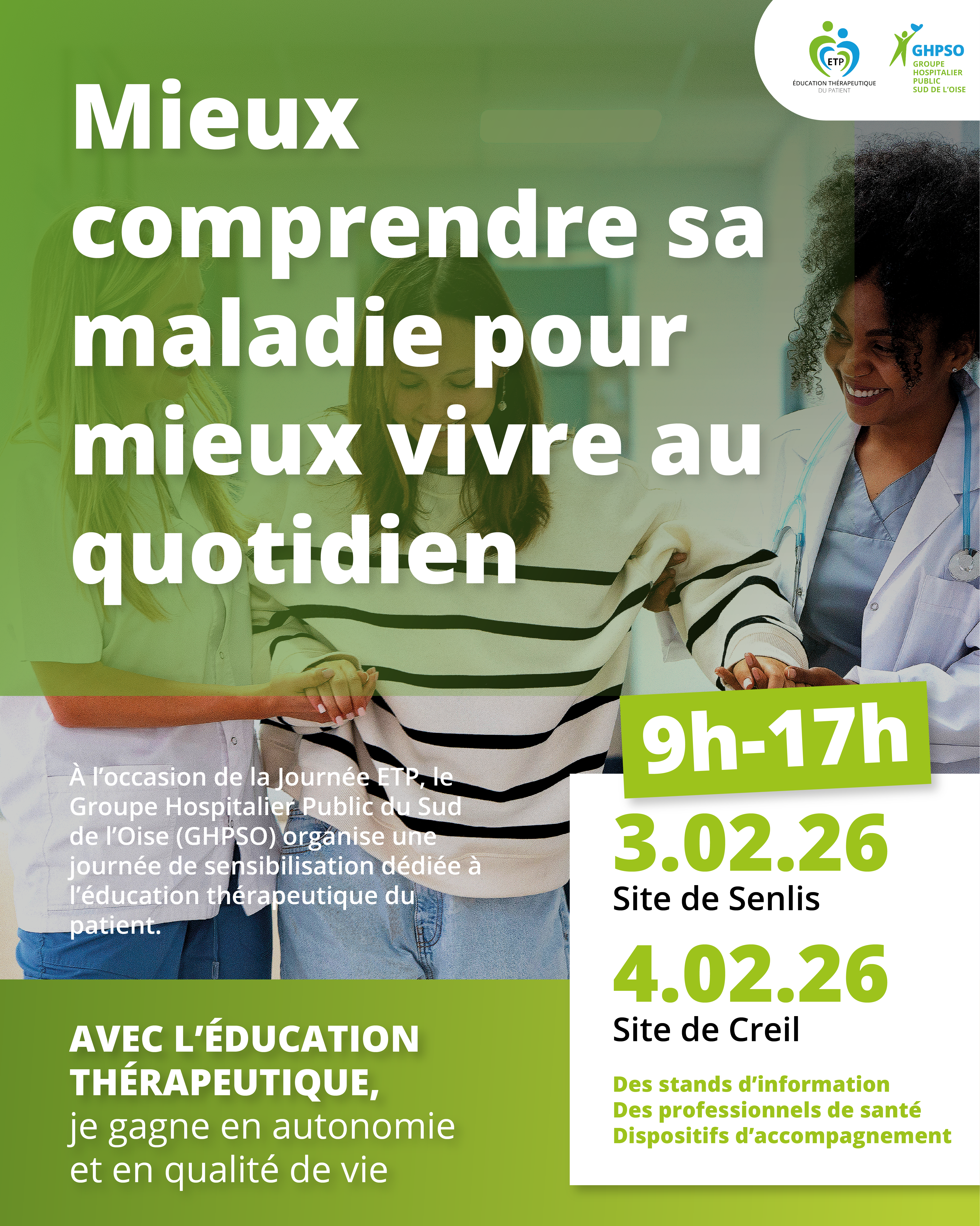 Le Groupe Hospitalier Public du Sud de l’Oise (GHPSO) organise les Journées ETP – Éducation Thérapeutique du Patient, les 3 et 4 février 2026, sur ses sites de Senlis et de Creil.